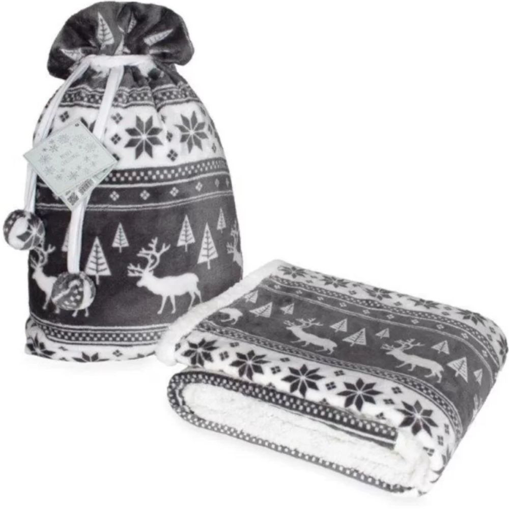 Karácsonyi sherpa takaró 127×152 cm – ajándék zsákban