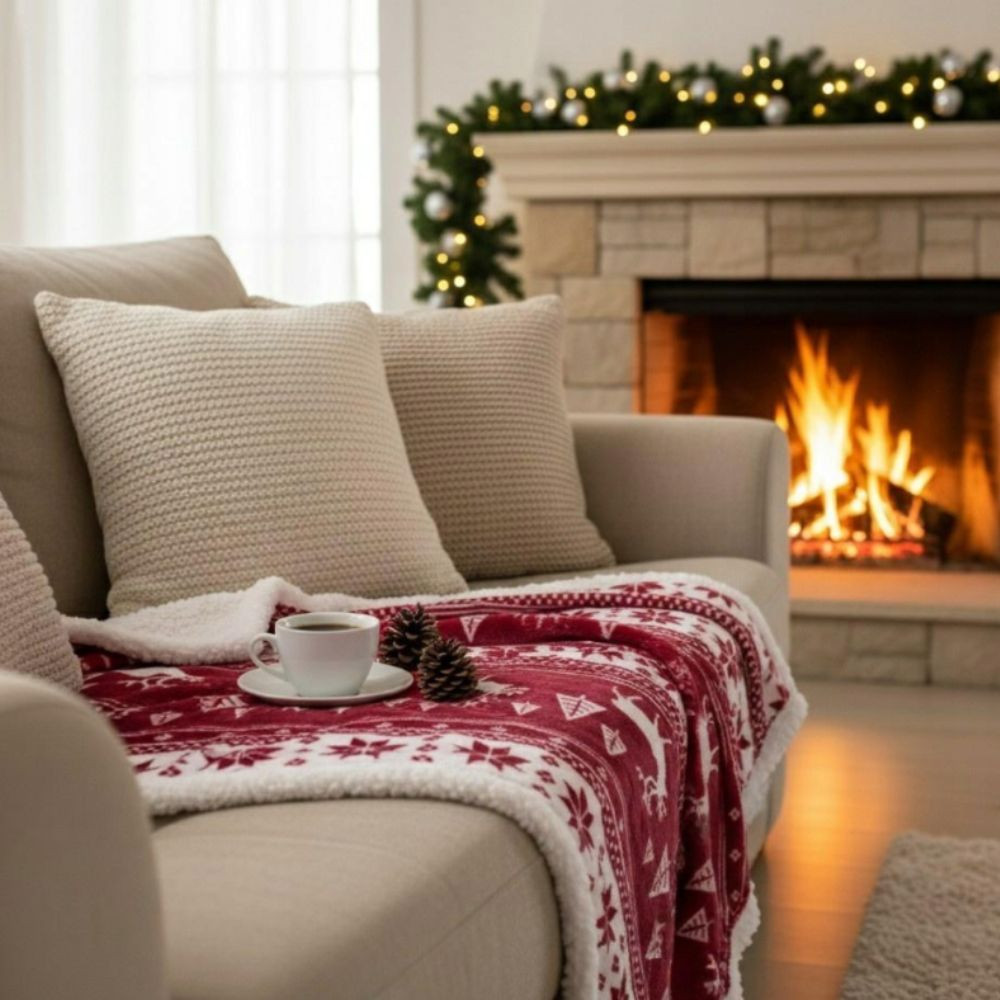 Tegye még hangulatosabbá és exkluzívabbá szálláshelyét az ünnepi időszakban ezzel a puha és elegáns karácsonyi sherpa takaróval. A gondosan megtervezett, téli mintával díszített takaró nemcsak dekoratív kiegészítő, hanem valódi komfortélményt is nyújt a vendégek számára.